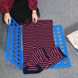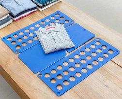 Prihranite čas in prostor s praktično zložljivo desko velikosti L, ki v nekaj sekundah zloži majice, srajce, puloverje, hlače in tudi otroška oblačila v enakomerne, kompaktne oblike. Lahek plast in intuitivna uporaba sta primerna tudi za otroke, oblačila so poleg tega manj zmečkana in pogosto likanje sploh ni potrebno.