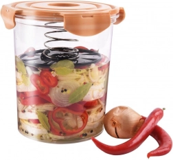 Pokrov s 4 sponkami in silikonskim tesnjenjem posodo hermetično zapre, zato je primerna tudi za prenašanje. Zaradi premišljene zasnove porabite manj olja, marinade ali slanice in hkrati dosežete intenzivnejši okus.