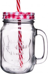 Ta stekleni kozarec v slogu mason jar združuje praktične podrobnosti z privlačnim videzom. Debelostensko steklo zagotavlja odpornost, navojni kovinski pokrovček preprečuje razlitje in nečistoče, slamicа pa omogoča udobno pitje. Odlično se poda k domačim limonadam, smoothiejem, sokovom in osvežujočim napitkom z ledom.