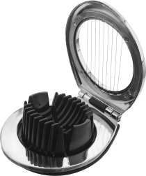 Praktičen rezalnik za jajca iz serije LUXY za hitro in enakomerno rezanje. Ponuja 3 načine rezanja (rezine, krhlji, kocke), je trden, večnamenski in primeren za pomivalni stroj. Idealen za jajca, šampinjone, kivije ali avokado do Ø 5,5 cm.