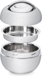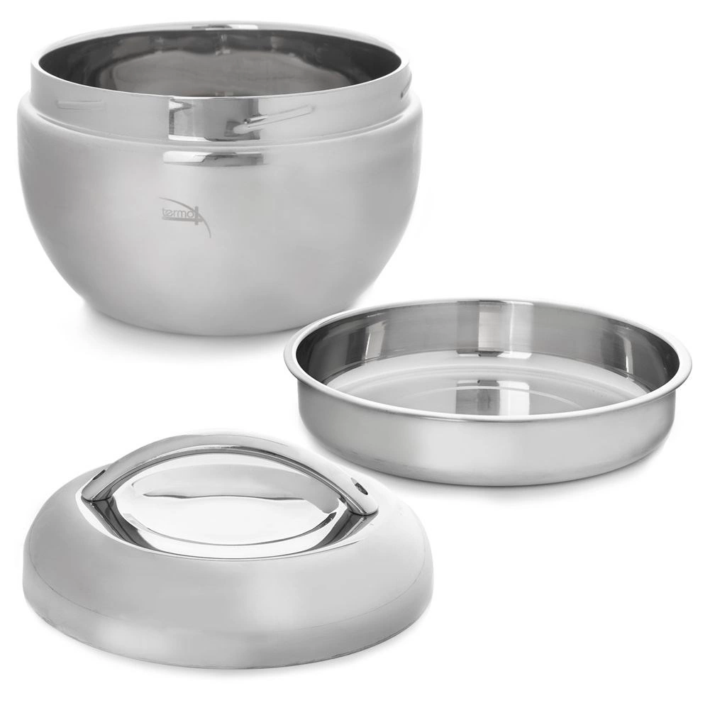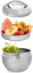 Praktična nerjaveča termo posoda za hrano s prostornino 2 l ohranja vaše jedi dlje tople ali hladne. Sestavljena je iz glavne posode, notranje posodice/krožnika in pokrova z udobnim ročajem. Zahvaljujoč kakovostni izdelavi je odporna, enostavna za prenašanje in odlično ohranja temperaturo do 2 uri. Idealna za v službo, na potovanja in za domače serviranje.