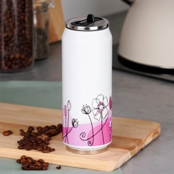 Odkrijte moderen in praktičen termo lonček v obliki pločevinke, ki združuje eleganten bel dizajn z rožnatim cvetličnim motivom ter vrhunsko funkcionalnost. Dvojna stena z vakuumsko izolacijo ohranja idealno temperaturo napitka več ur, medtem ko nerjavno jeklo zagotavlja dolgo življenjsko dobo in odpornost pri vsakodnevni uporabi.