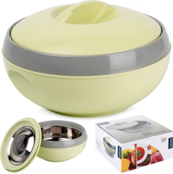 Praktična termos posoda za hrano s kapaciteto 2,5 l (uporabna 2,2 l) bo zahvaljujoč nerjavni vložki ohranila vaše jedi topłe do 2 uri. Lahka zasnova, enostavno zapiranje z zasukom pokrova in udoben ročaj za prenašanje. Idealna za serviranje toplih jedi in za shranjevanje sladoleda poleti.