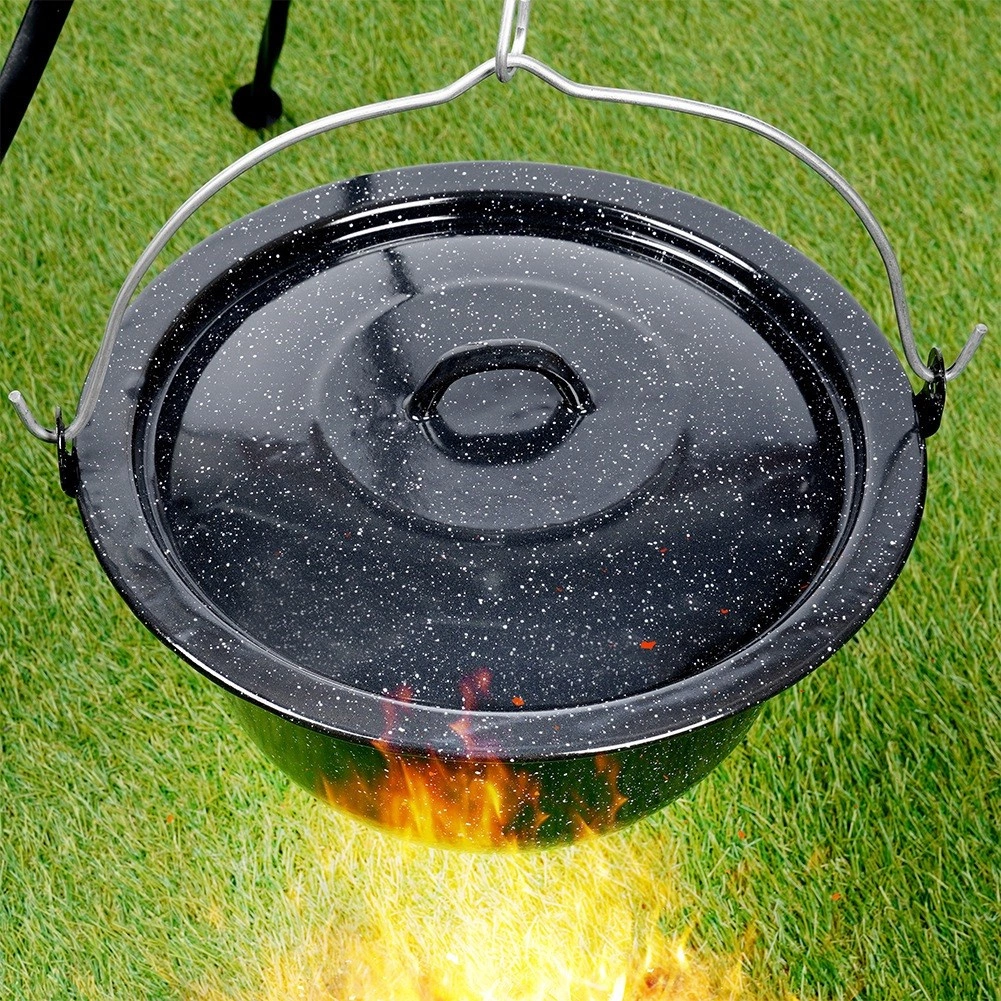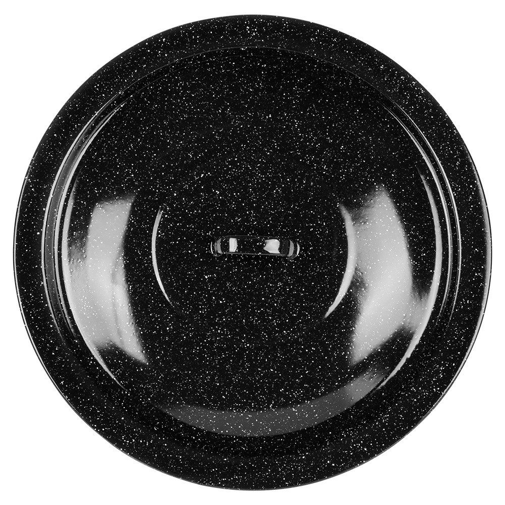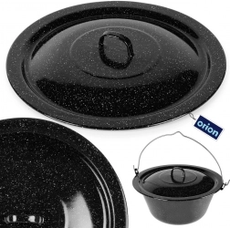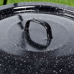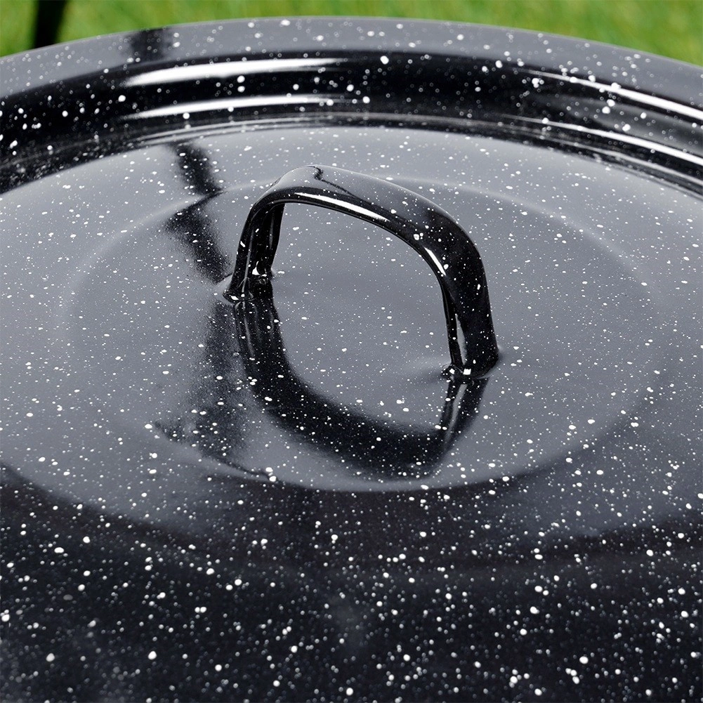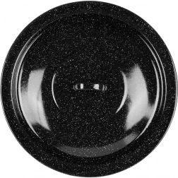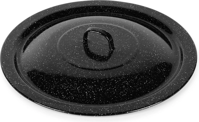 Robusten pokrov iz črno lisasto emajliranega jekla je idealen za kuhanje v naravi in na vrtu. V kotličku zadržuje toploto in vlago, pospeši vrenje ter izboljša okus juh, golažev in dušenih jedi. Primeren za madžarske kotličke z volumnom 13 l (premer 40 cm).