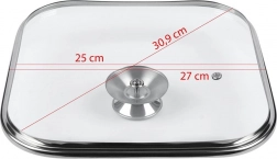 - Univerzalna mera 27 × 27 cm (notranja približno 25 × 25 cm) za kvadratno posodo