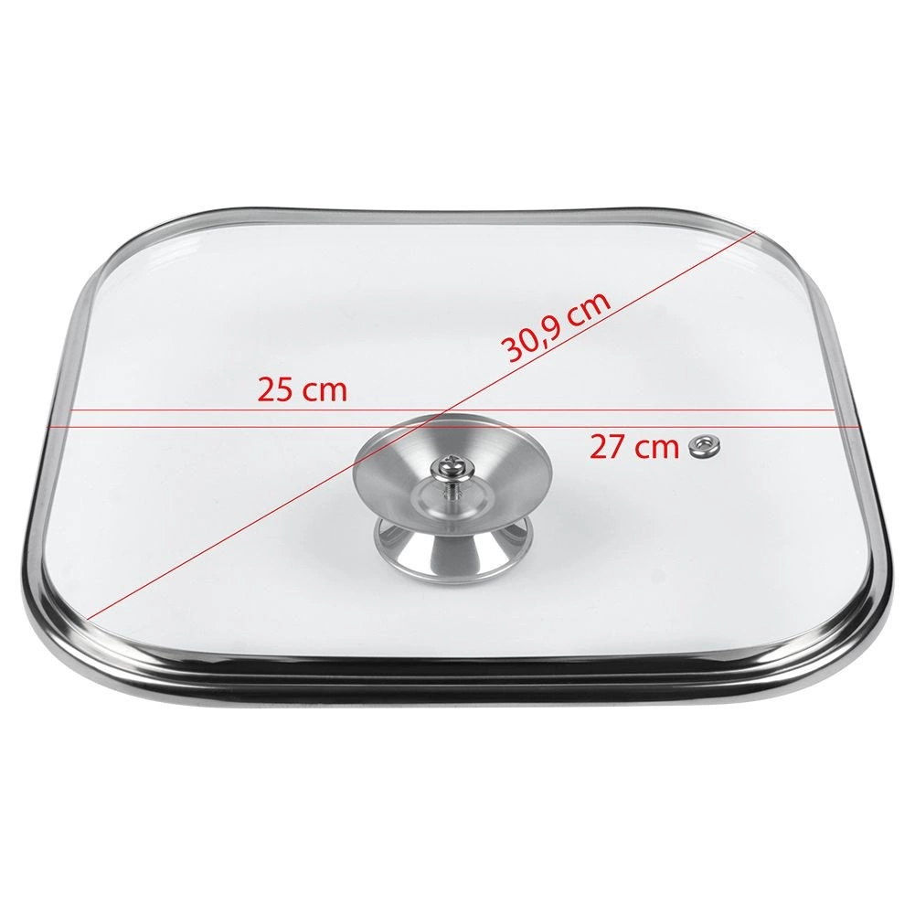 Praktičen pokrov iz prozornega, ognjevarnega stekla z robustnim nerjavnim robom in udobnim nerjavnim ročajem je idealen dodatek za kvadratne lonce, ponve in kozice. Zahvaljujoč prosojni izvedbi imate kuhanje vedno pod nadzorom, ne da bi sproščali paro in toploto.