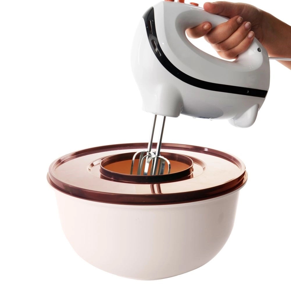 Praktična zasnova pokrova omogoča vstavitev metlic ročnega mešalnika in hkrati ohranja vsebino posode pod nadzorom – manj nereda in čistejša kuhinja.