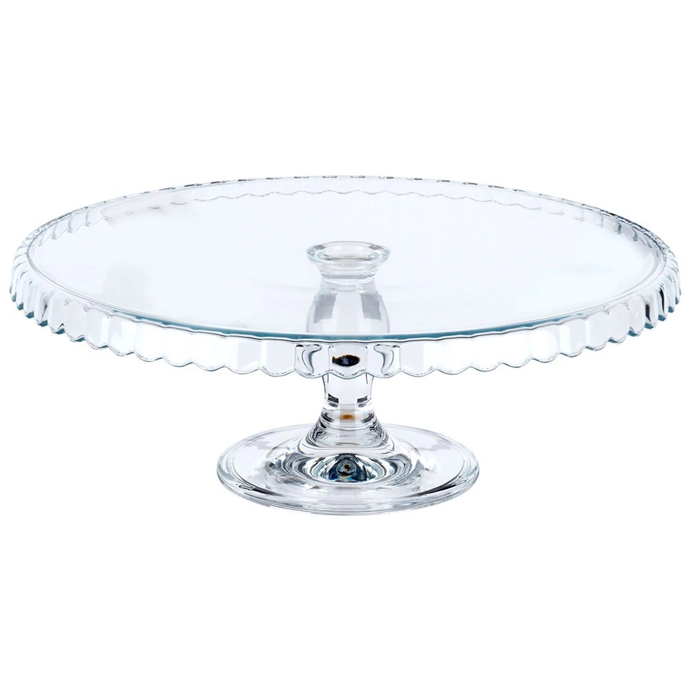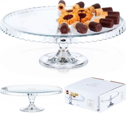 Prozorno steklo in valovit rob poudarita videz tort in peciva, ki bodo na mizi dobesedno zasijali.