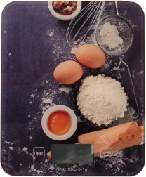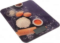 Praktična in stilska kuhinjska tehtnica za natančno tehtanje sestavin. Zahvaljujoč preglednemu LCD-zaslonu zlahka preverite težo sadja, zelenjave, suhih in tekočih sestavin. Ploska konstrukcija iz kaljenega stekla z dekorativnim motivom je enostavna za vzdrževanje in prihrani prostor v predalu ali omarici.