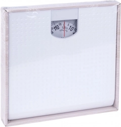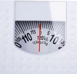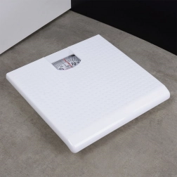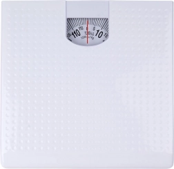Mehanska kopalniška tehtnica z vzdržljivim plastičnim ohišjem in nizkim profilom je idealna za domačo uporabo. Zahvaljujoč pregledni lestvici v kilogramih do 120 kg hitro izveste svojo težo brez čakanja in brez baterij. Čista bela zasnova se poda tako modernim kot klasičnim kopalnicam.