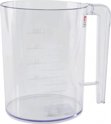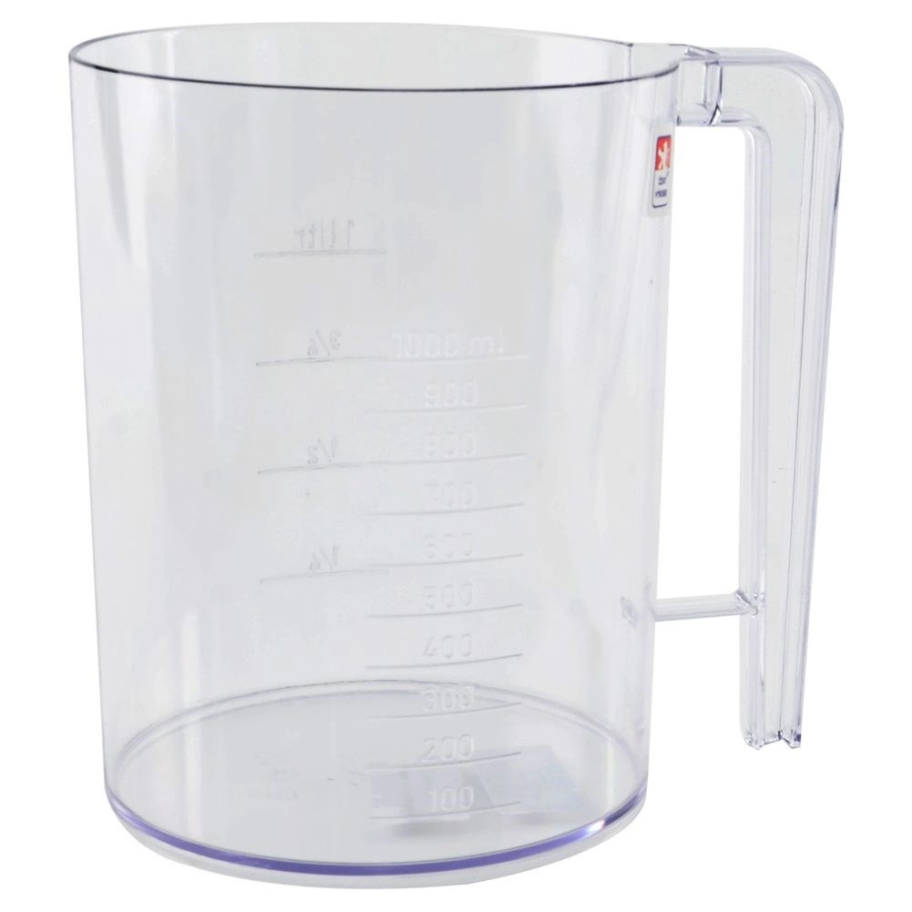 Prozoren vrč z jasno lestvico 100–1000 ml in označbami 1/4–1 l olajša nadzor nad količino sestavin in konzistenco testa.