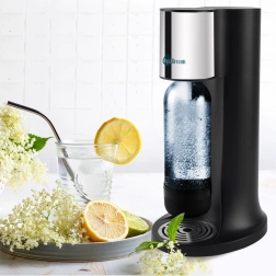 Stilski domači aparat za pripravo gazirane vode AQUADREAM v črni barvi vam omogoča, da si v hipu pripravite svežo gazirano vodo in domače limonade. Zahvaljujoč nastavitvi intenzivnosti gaziranja si določite natanko toliko mehurčkov, kot jih imate radi. En valj CO2 pripravi do 80 litrov napitkov, kar prihrani denar in planet – manj plastičnih steklenic v odpadkih. Za varen proces skrbi varnostni ventil in hitro pritrjevanje steklenice FAST LOCK.