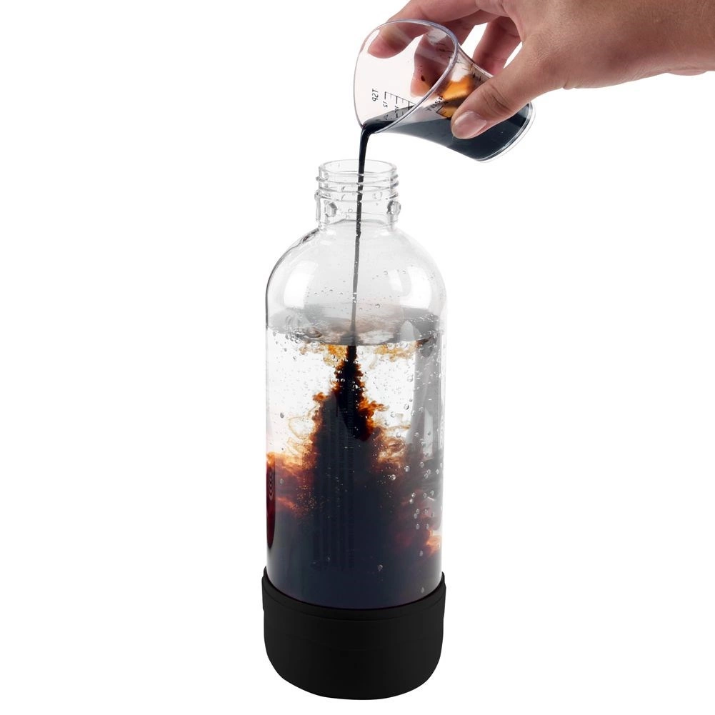 Z vsakim CO2 valjem pripravite do 80 litrov napitkov, kar občutno zmanjšuje porabo enkratnih PET steklenic. Naprava je opremljena z varnostnim ventilom za zanesljivo delovanje, steklenica s sistemom FAST LOCK pa omogoča hitro in enostavno namestitev brez privijanja.