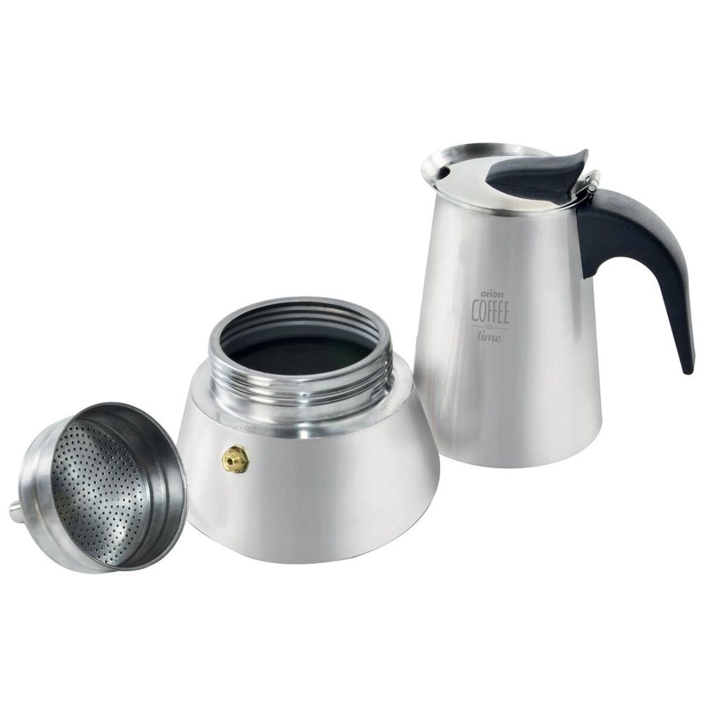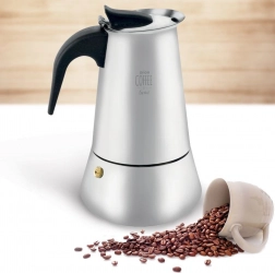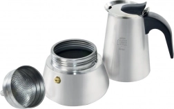 Ta kakovostna nerjaveča kavna naprava moka (moka kafetjera) prinaša pristno aromo in vonj italijanskega espressa v vašo kuhinjo. Robusten trup iz nerjavečega jekla zagotavlja dolgo življenjsko dobo in enakomerno porazdelitev toplote, medtem ko ergonomski bakelitni ročaj nudi varen in udoben oprijem.