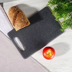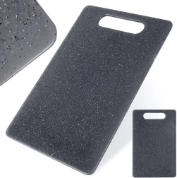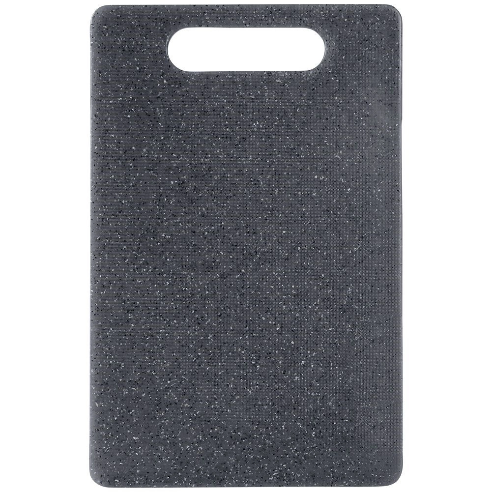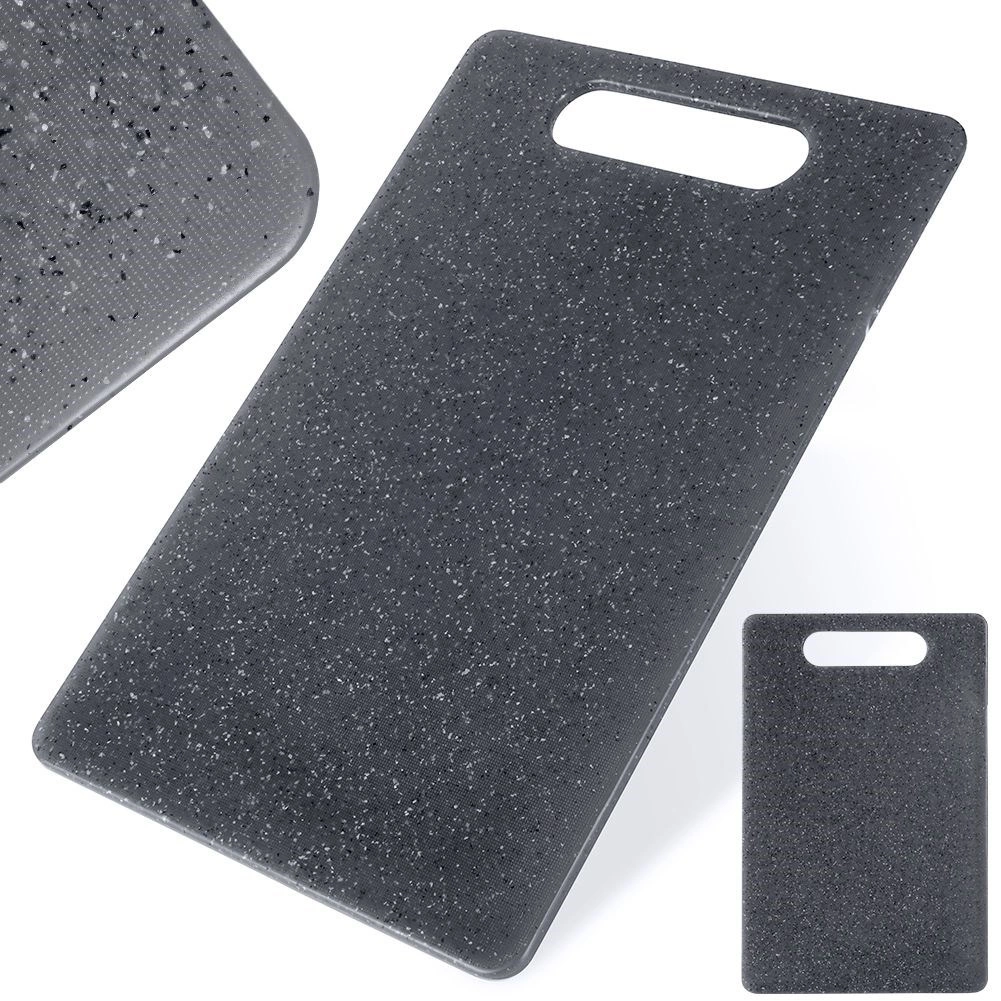 Siva deska za rezanje iz trpežne plastike s površino v videzu granita je odlična izbira za vsako kuhinjo. Kompaktne mere 24 × 15 cm prihranijo prostor, hkrati pa ponujajo udobno delovno površino za rezanje peciva, sadja, zelenjave in mesa. Material je nežen do rezil in primeren za vse nože, vključno s keramičnimi.