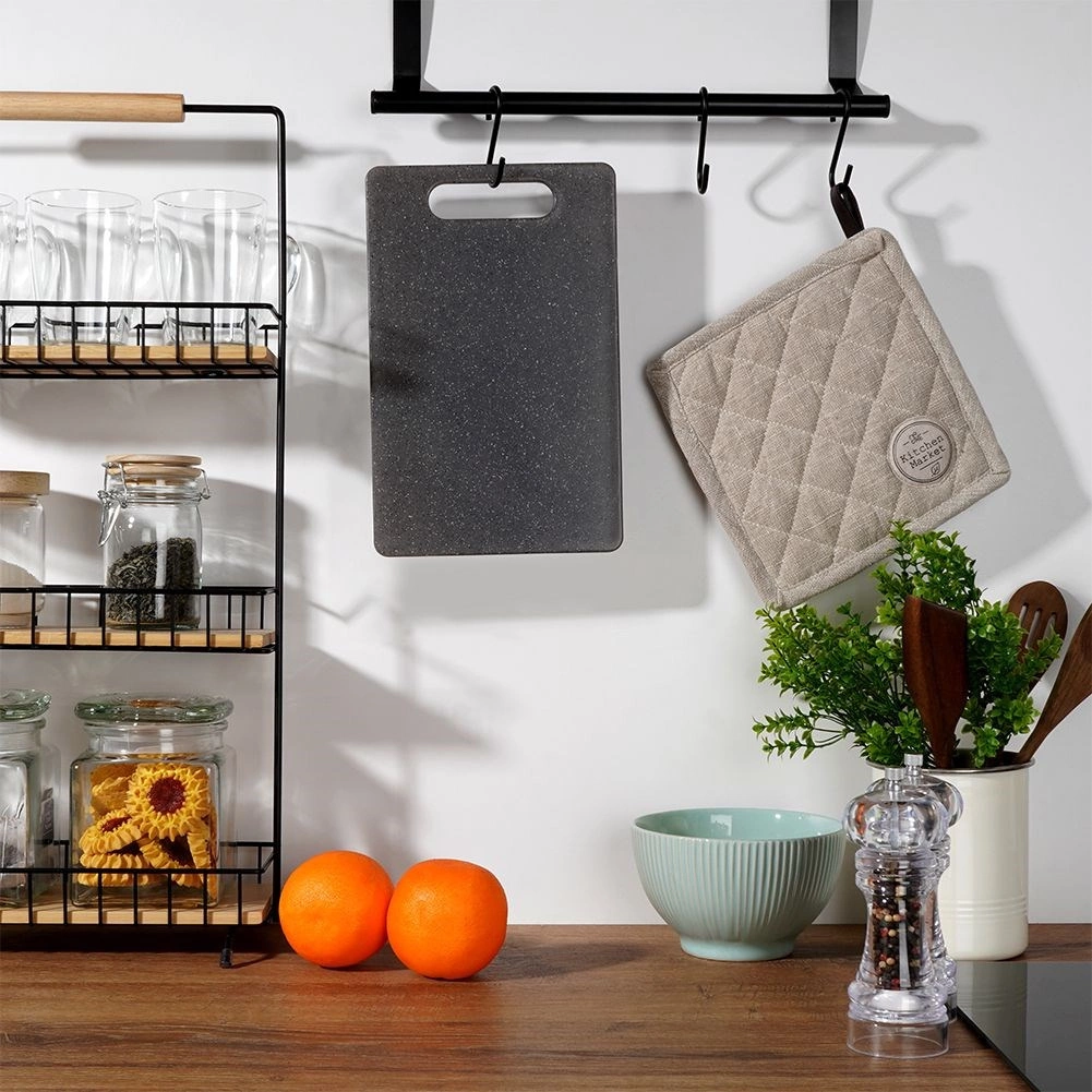Kompaktna in trpežna deska za rezanje iz kakovostne plastike v sivi barvi z motivom granita. Idealna za vsakodnevno pripravo jedi, primerna za vse vrste nožev, vključno s keramičnimi. Zahvaljujoč integrirani odprtini se zlahka prenaša in obeša, je enostavna za vzdrževanje in primerna za pomivanje v pomivalnem stroju. Ne absorbira vonjav, ne vpija tekočin in je varna za stik z živili. Preverjena kakovost znamke ORION.
