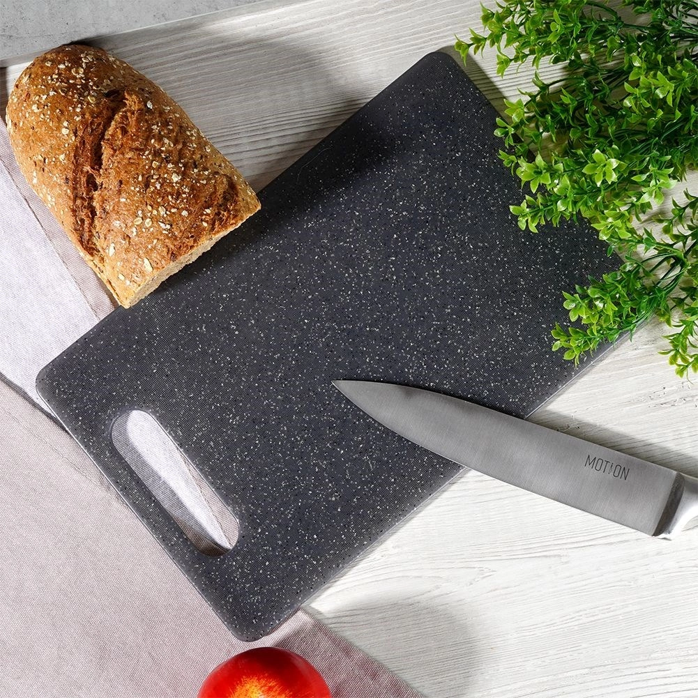 Kakovostna plastika v sivem meliranem videzu je čvrsta, trpežna in prijazna do nožev, zato se rezila manj topijo.
