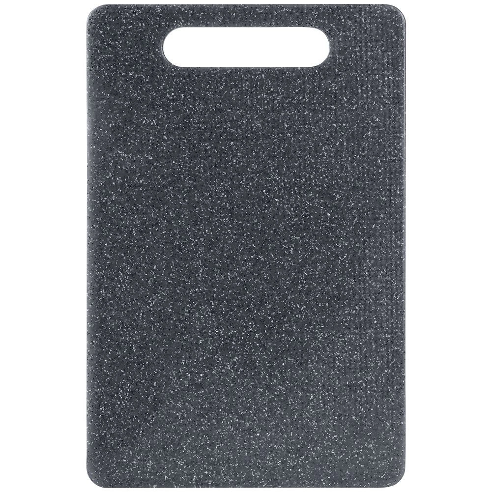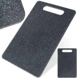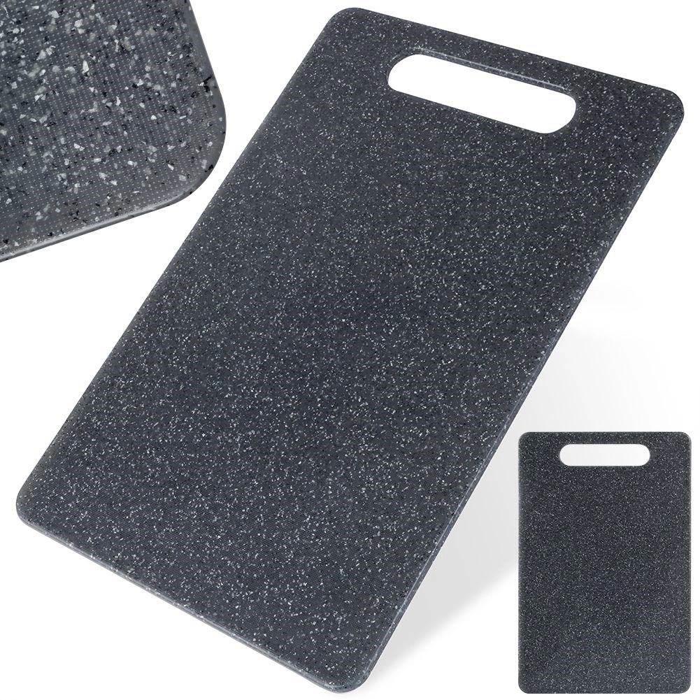 Univerzalna rezalna deska v elegantni sivi barvi z videzom granita bo zanesljiv pomočnik v vsaki kuhinji. Zahvaljujoč kakovostni plastiki je lahka, trpežna in enostavna za čiščenje, hkrati pa nudi stabilno površino za rezanje kruha, zelenjave in mesa.
