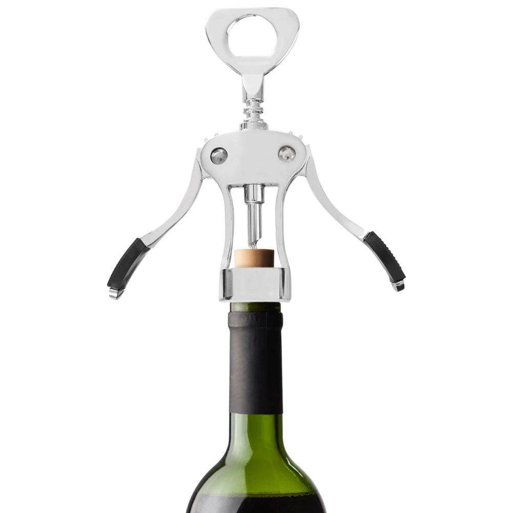 Ergonomski ročaji nudijo odličen vzvod za udoben izvlek plute, zgornje uho pa služi kot odpirač za zamaške na kljukico. Eleganten videz se poda domači kuhinji, vinoteki ali na vikendu in je odličen predlog za praktično darilo.