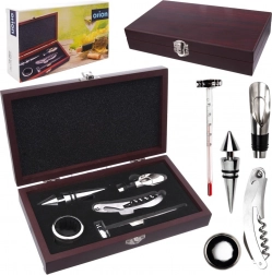 Ta celovit komplet vinskih dodatkov spremeni vsako odpiranje steklenice v majhen ritual. Orodja iz odpornega nerjavnega jekla, dopolnjena z natančnim steklenim termometrom in praktičnimi tesnili, zagotavljajo udobje, čistočo in profesionalno predstavitev. Shranjevanje v temnem lesenem boksu ščiti orodja in kompletu daje darilni videz.