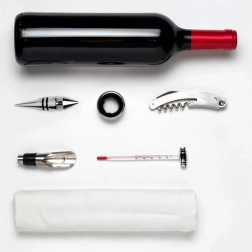V paketu najdete vse, kar potrebujete: odpirač z vgrajenim nožkom za enostavno odstranjevanje folije, nalivalni nastavek za tekoče in nekapljajoče nalivanje, zamašek za ohranjanje svežine, kapljični obroček proti madežem ter termometer za nadzor idealne temperature serviranja.