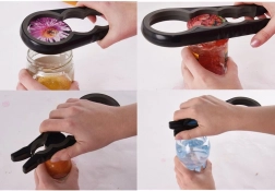 Štiri velikosti odprtin udobno pokrijejo majhne zamaške steklenic in velike pokrove kozarcev – eno orodje za večino embalaže v gospodinjstvu.