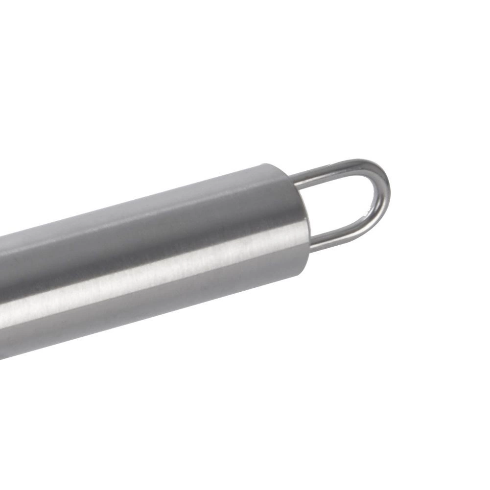 Odporna izvedba iz nerjavečega jekla zagotavlja dolgo življenjsko dobo in enostavno vzdrževanje, vključno z možnostjo pranja v pomivalnem stroju. Dolg ergonomičen ročaj se lepo prilega roki, obešalno ušesce pa omogoča prostorsko varčno shranjevanje na letvico ali kavelj.