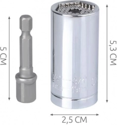 Naša univerzalna vtična glava je zasnovana tako, da se prilagodi širokemu spektru glav vijakov in matic. Z vgrajenimi kovinskimi drogovi, ki se oblikujejo okoli predmeta, je to orodje nepogrešljiv sodelavec za vsakogar, ki rad ustvarja.