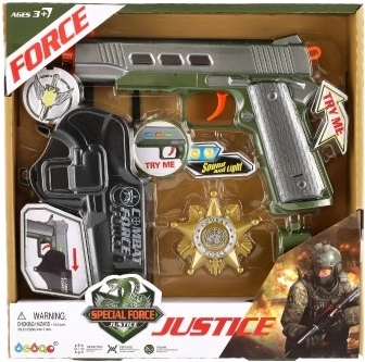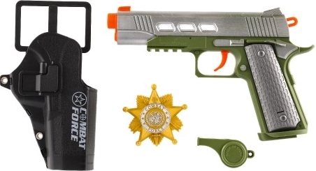 • Set vključuje: Poleg pištole tudi tok, šerifsko značko in piščalko.