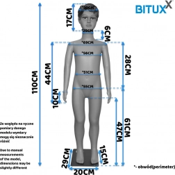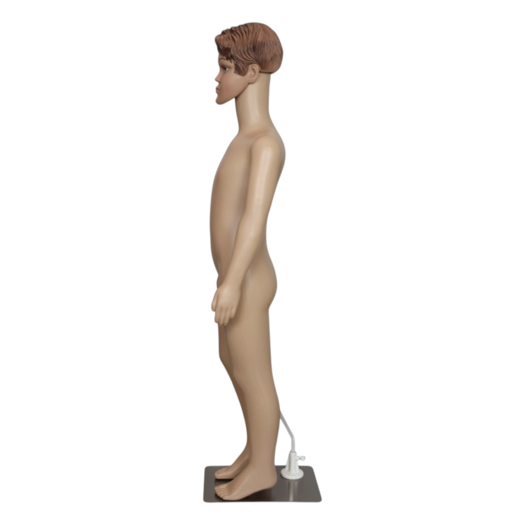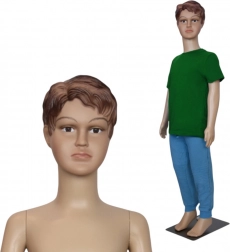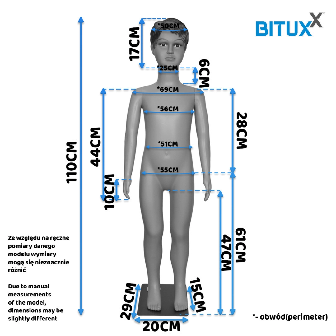 Ta otroška figura z višino približno 110 cm izstopa po naravnem videzu – podrobno oblikovan obraz, lasje in roke pritegnejo pozornost in povečajo privlačnost postavitve. Material iz odpornega polietilena je lahek, trden in enostaven za čiščenje, zato je odličen za vsakodnevno uporabo v maloprodaji.