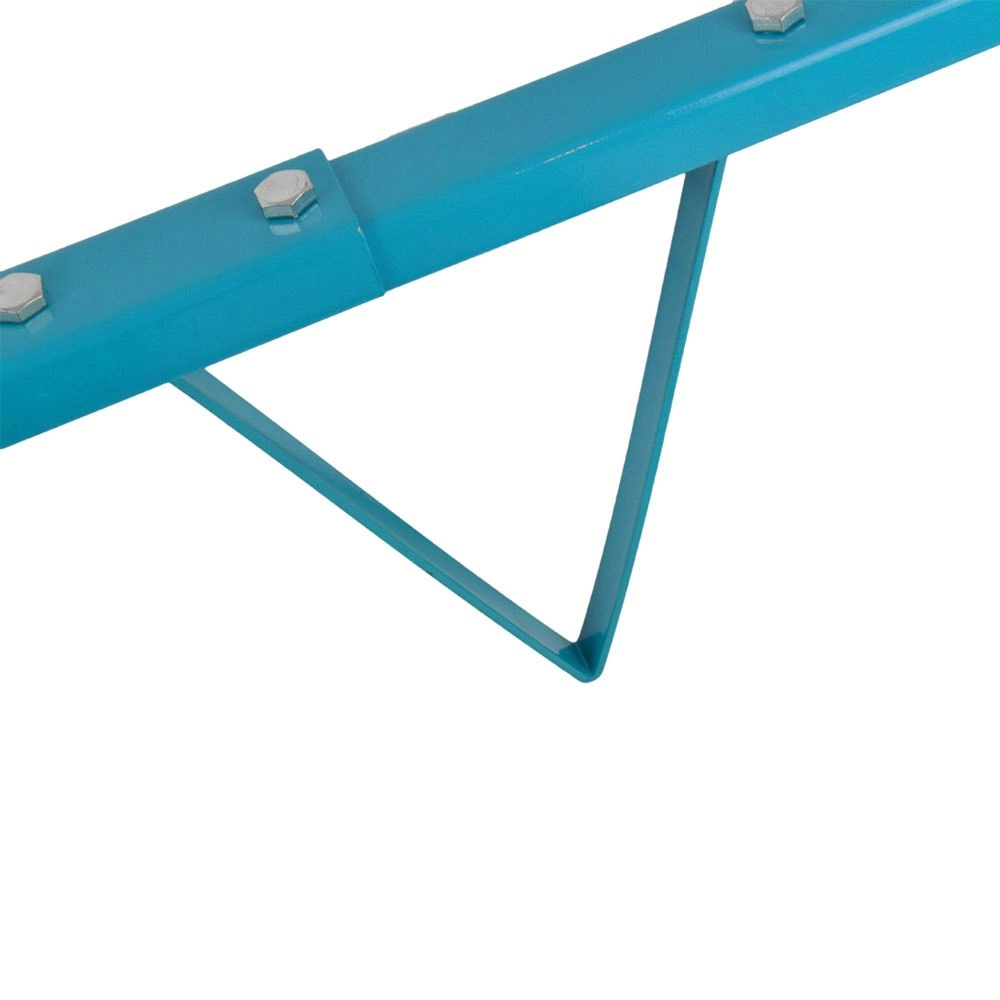 Vzdržljiv jeklen okvir z ojačitvami in možnostjo dolžinskega nastavljanja zagotavlja stabilnost in enostavno prilagoditev prikolici.