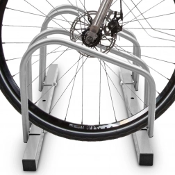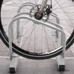 Široki U-loki in razmik 30 cm držijo kolesa pokonci, preprečujejo stik okvirjev in olajšajo zaklepanje.