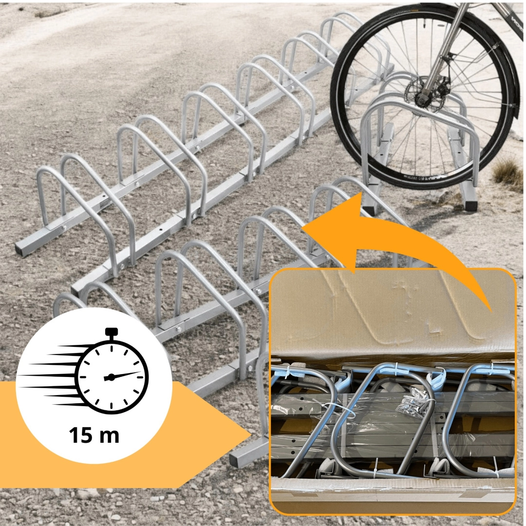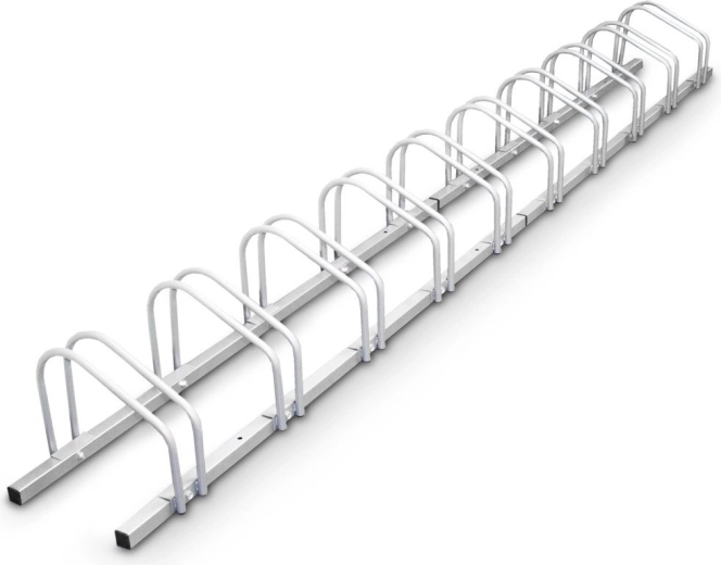 Robustno kovinsko stojalo BITUXX za do 10 koles prinaša red in varno parkiranje doma, v službi ali na javnih mestih. Odporno pocinkano jeklo zanesljivo kljubuje vremenu, medtem ko premišljeni razmiki držijo kolesa pokonci brez stika krmila in okvirjev.