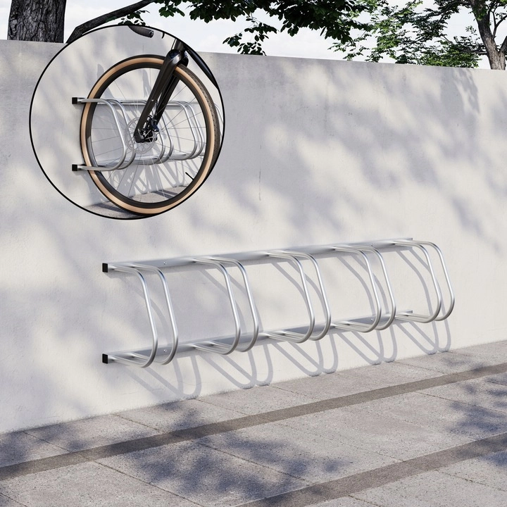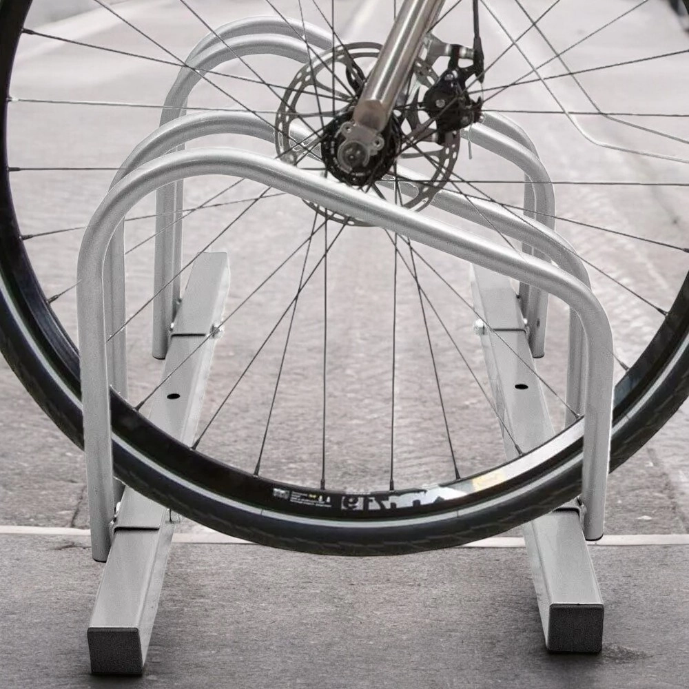 Galvanska površinska obdelava ščiti stojalo pred dežjem, vlago in korozijo. Idealno za garaže, dvorišča in javne površine.