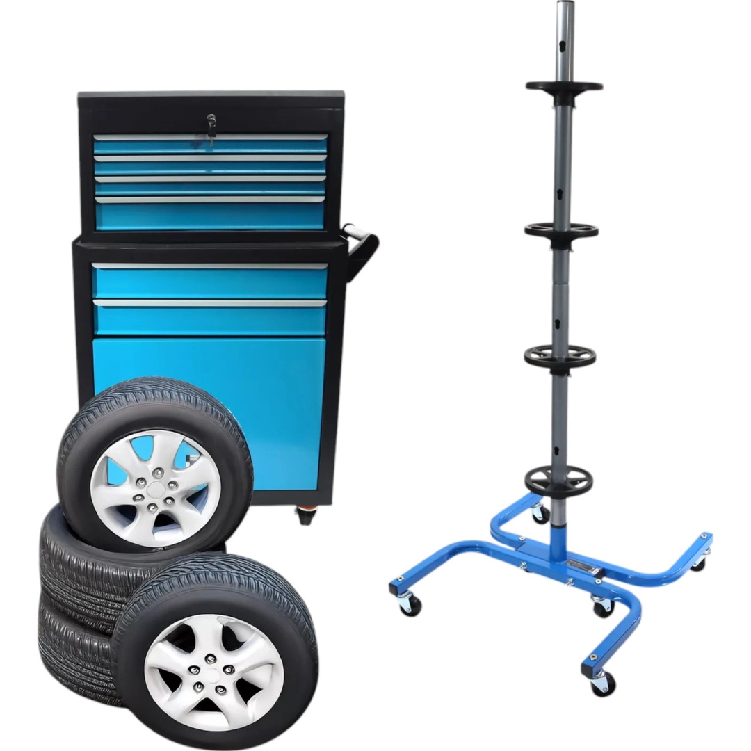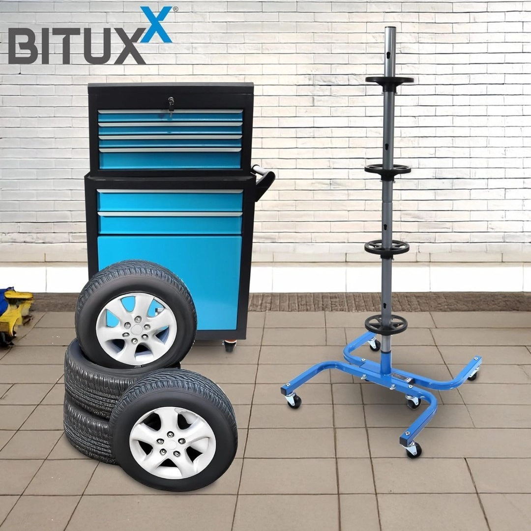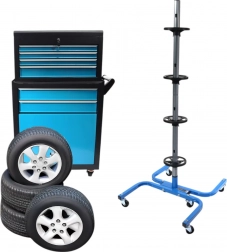 Pametno in prostorsko varčno shranjujte letne in zimske komplete koles. Mobilno stojalo s trdno jekleno konstrukcijo in ločilnimi obroči drži pnevmatike v pravilnem položaju, s čimer zmanjšuje tveganje odtisov in deformacij. Zaradi kompaktnih mer se prilega tudi v manjši prostor, kolesa pa imate vedno pri roki.