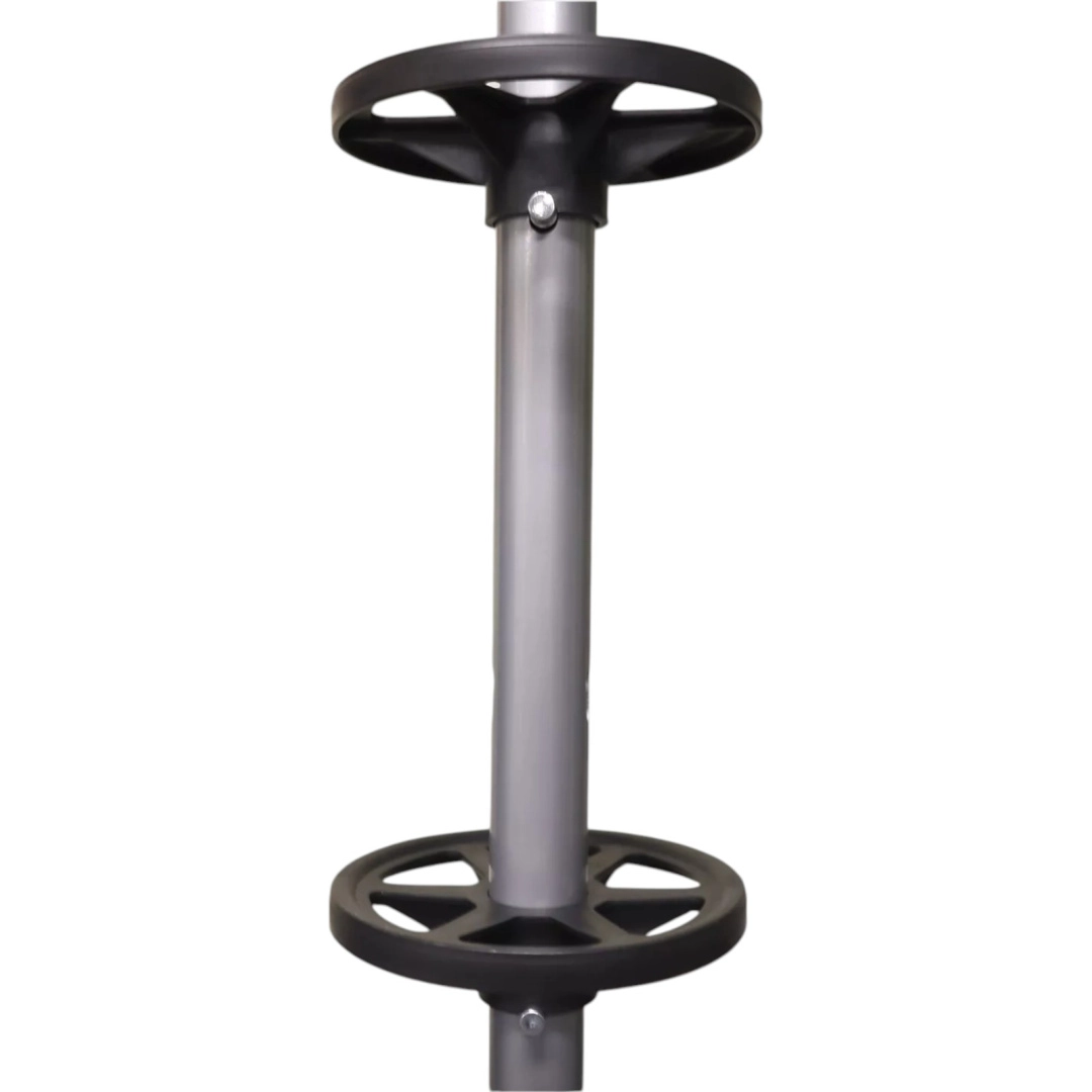 Masivna jeklena konstrukcija zanesljivo prenese tudi težke komplete koles z naplatki. Idealno za dolgoročno sezonsko shranjevanje.