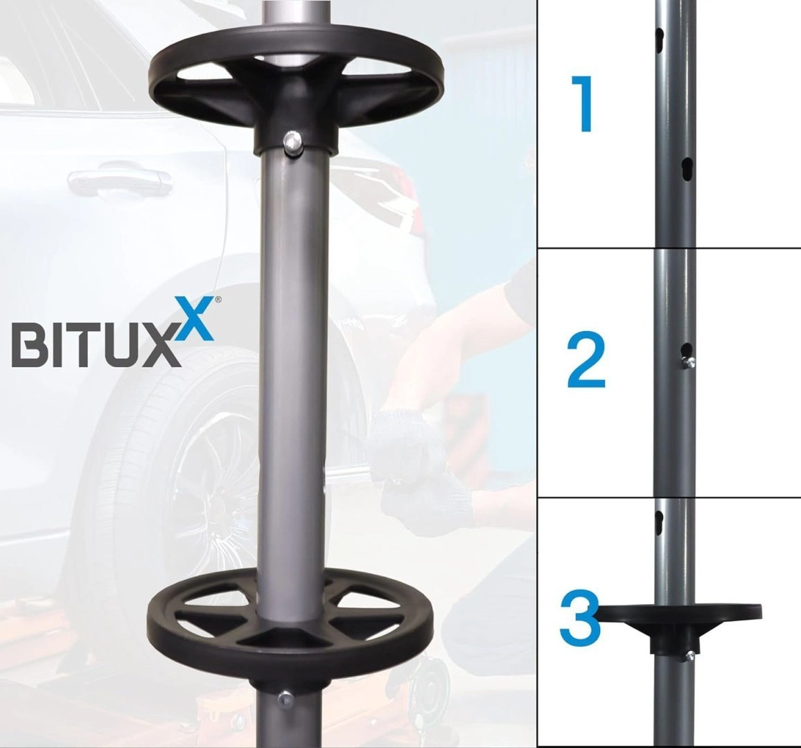 Mobilnost brez napora: vrtljiva kolesca in nizka teža omogočajo hitro in varno premikanje stojala po garaži ali delavnici. Univerzalna združljivost do širine 245 mm pokrije večino običajnih dimenzij osebnih vozil.