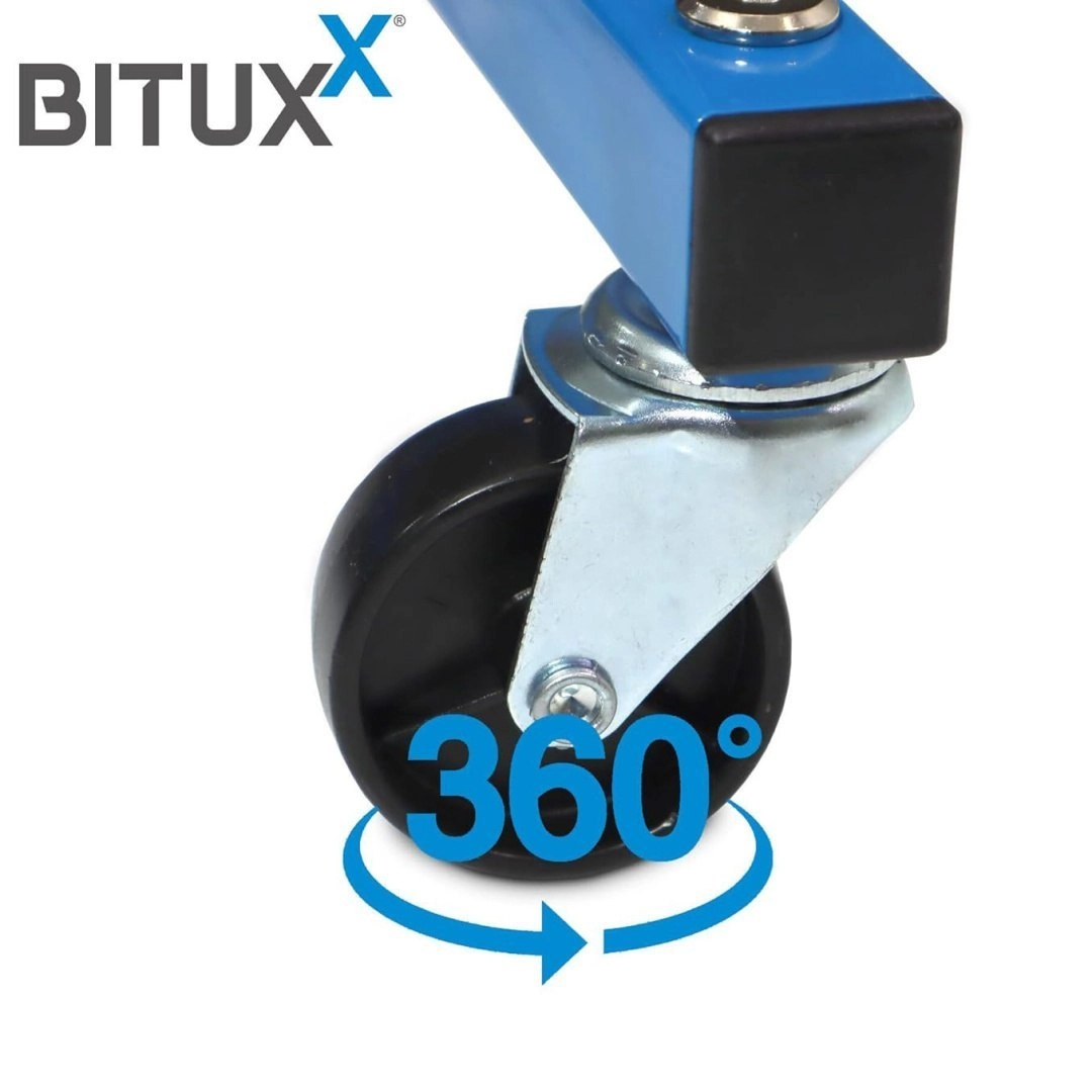 Zaradi kolesc stojalo zlahka premaknete po garaži ali delavnici tudi v polni obremenitvi. Varčen dizajn prihrani prostor in poveča udobje pri delu.