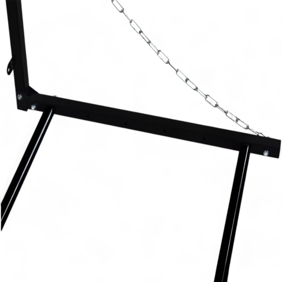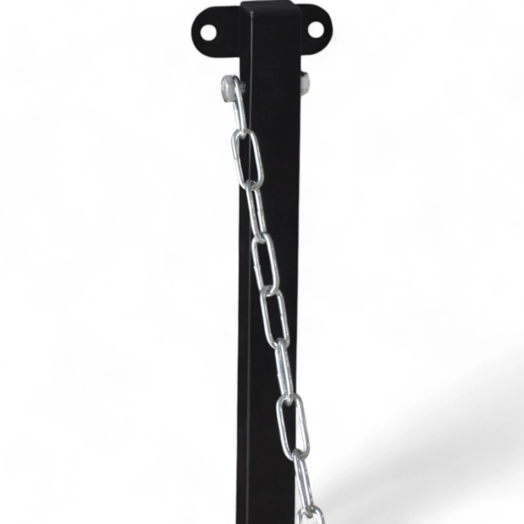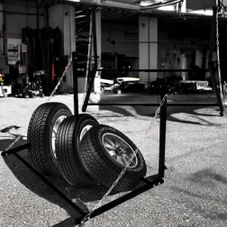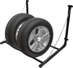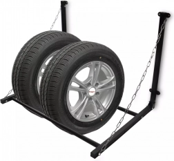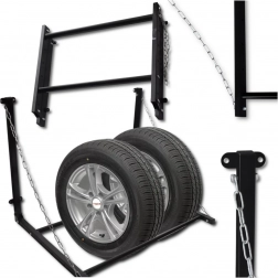 Robustna jeklena konstrukcija z verižno zaščito varno nosi do štiri kolesa ali pnevmatike.