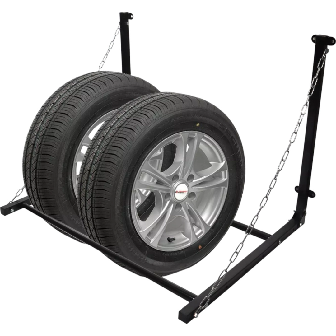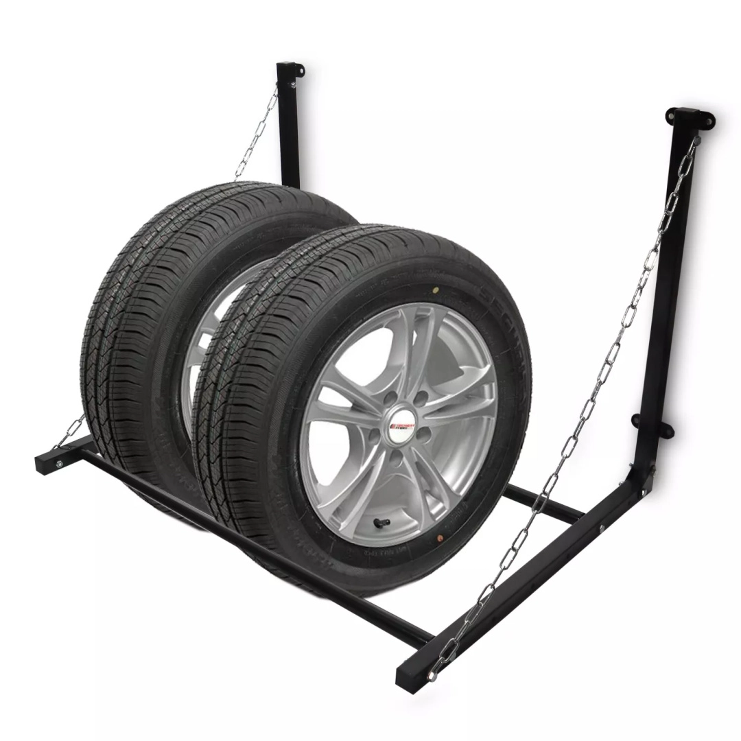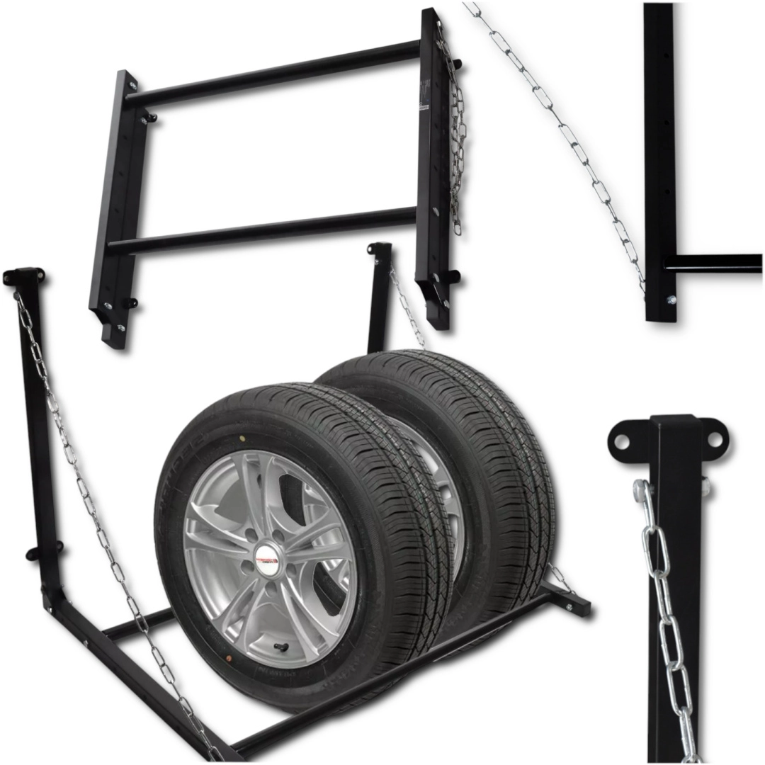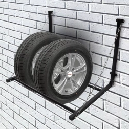 Robusten jeklen stenski nosilec za pnevmatike in kolesa je idealen za garažo, delavnico in klet. Širino preprosto prilagodite v razponu 93–170 cm, zato ustreza različnim dimenzijam avtomobilskih, motociklističnih in kolesarskih pnevmatik in koles. Ko nosilca ne uporabljate, ga lahko zložite in prostor ostane prost.