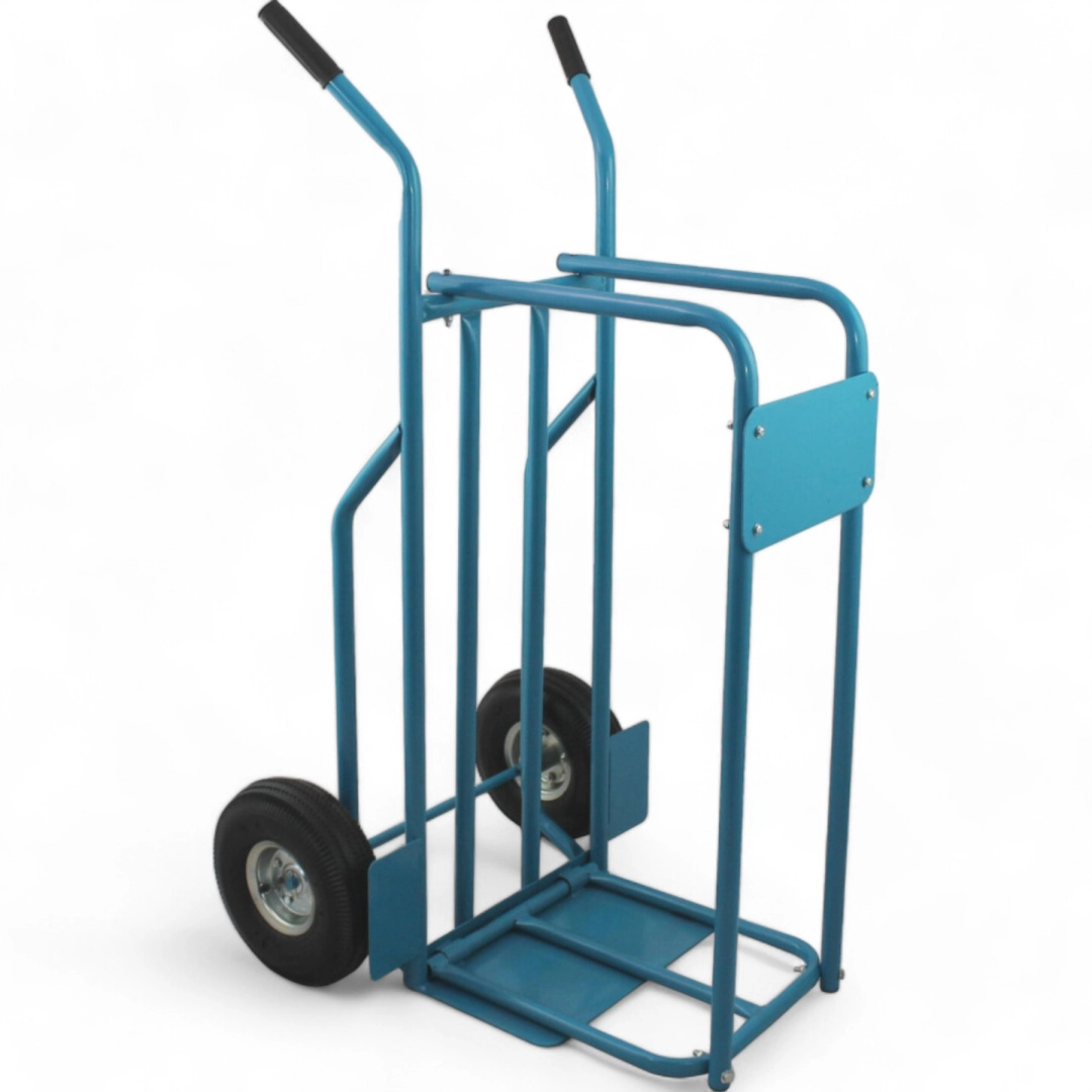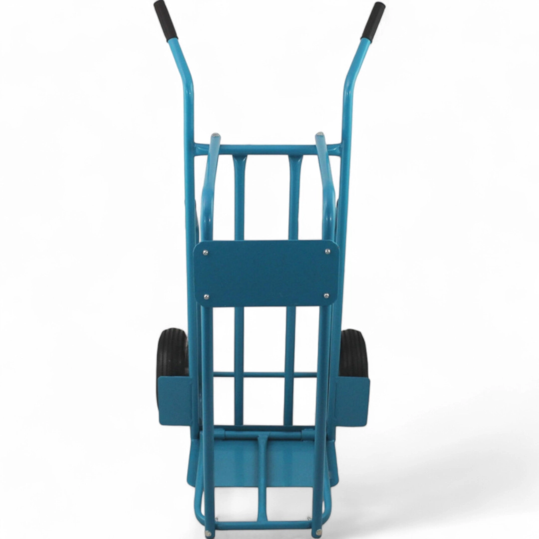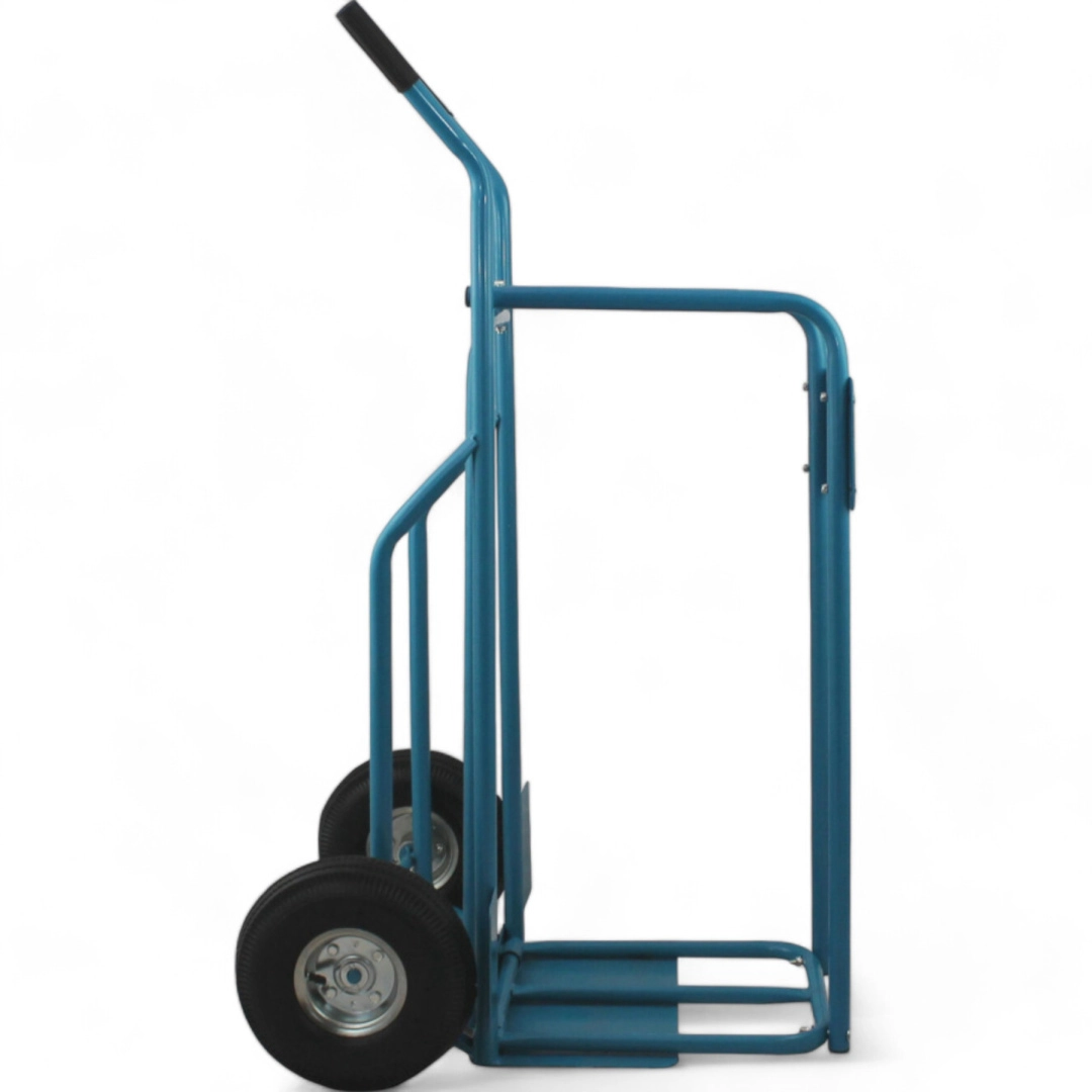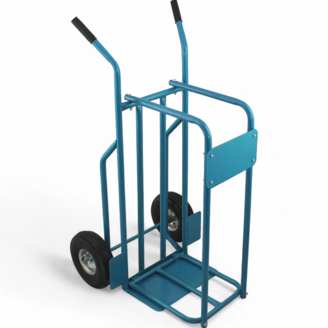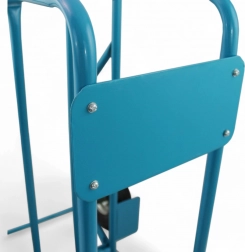 Trdna jeklena konstrukcija z ojačitvami ter ergonomski ročaji omogočajo varno manevriranje in dolgo življenjsko dobo pri vsakodnevni uporabi.