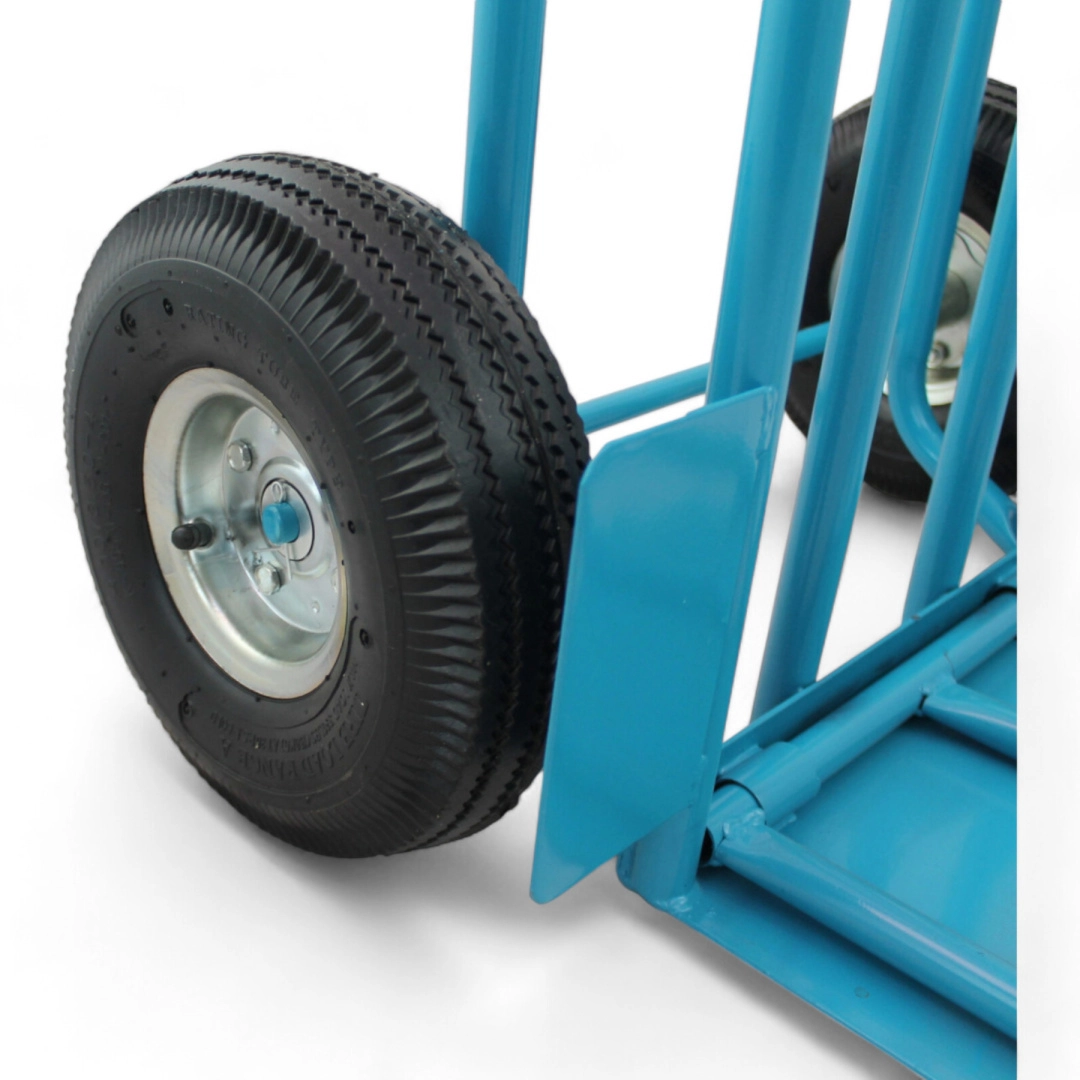 Velika napihljiva kolesa zagotavljajo stabilnost, blažijo udarce in olajšajo vožnjo po tlakovcih, pesku in travi tudi s polno obremenitvijo.