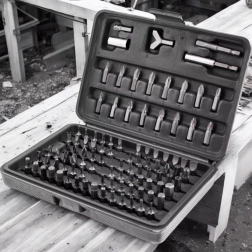 Vsak nastavek ima svoje mesto v čvrstem plastičnem kovčku. Velikost hitro najdete, vse pa varno prenašate.