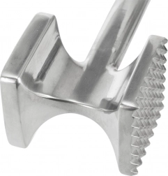 Zahvaljujoč ergonomskemu, nedrsečemu ročaju je delo z njim udobno in varno. Praktično uho omogoča obešanje na letvico ali enostavno shranjevanje v predalu. Orodje je odporno in trpežno, primerno ne le za svinjino, govedino, perutnino ali ribe, temveč tudi za drobljenje oreščkov in začimb. Za dolgo življenjsko dobo je priporočeno ročno pomivanje.