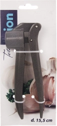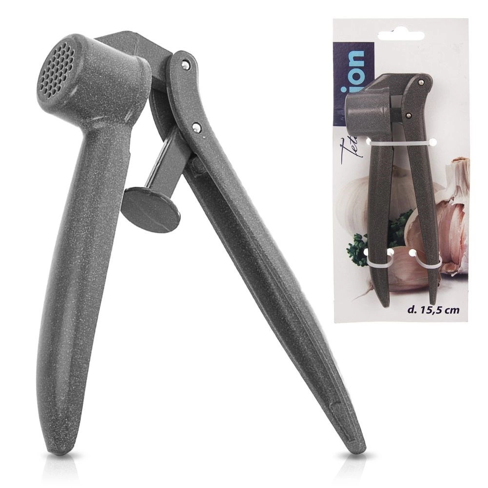 Aluminijast stiskalnik za česen je zanesljiv pomočnik v vsaki kuhinji. Nadomesti zamudno ribanje ali rezanje in v hipu ustvari fino česnovo pasto polnega okusa in arome. Komora sprejme cel strok, natančno vodenje in robusten ročični mehanizem pa zagotavljata učinkovito stiskanje brez napora.