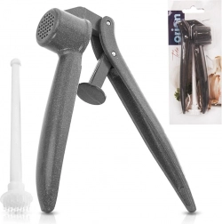 Stiskalo je izdelano iz varnih materialov, nevtralnih do živil, in prenese vsakodnevno uporabo. Konstrukcija sprejme cel strok česna in zagotovi precizno iztiskanje neposredno v omake, juhe ali marinade. Vzdrževanje je enostavno – stiskalo in čistilo sta primerna za pomivalni stroj.