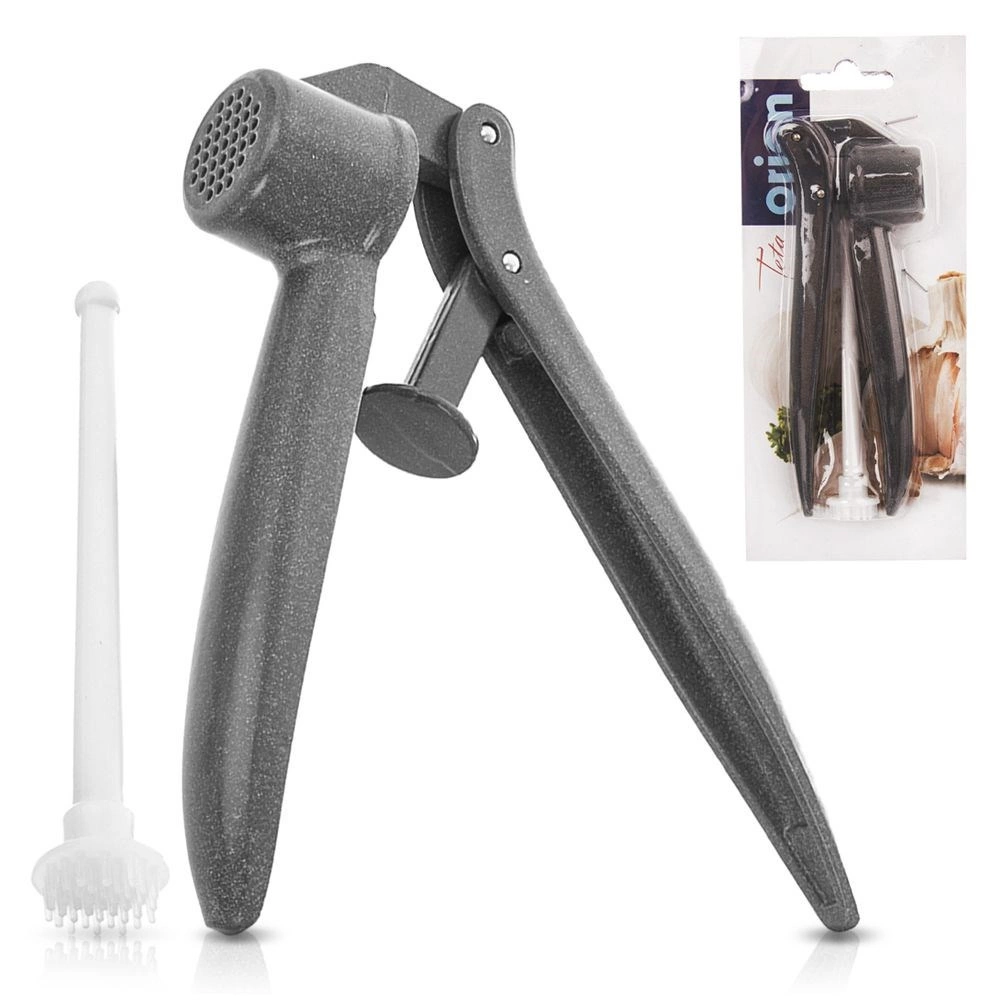 To robustno stiskalo za česen iz kakovostnega prevlečenega aluminija močno olajša pripravo jedi. Zahvaljujoč ergonomskim ročajem in natančni stiskalni komori hitro ustvarite fino česnovo pasto brez napora. Del pakiranja je tudi praktično čistilo, ki pomaga odstraniti ostanke iz odprtin za popolnoma higiensko uporabo.