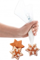 S tem kompletom slaščičarskih vrečk boste zlahka nanašali kreme, glazure in nadeve ter ustvarili natančne dekoracije na tortah, pitah, cupcakesih in piškotih. Prožen material omogoča natančno doziranje, velikost odprtine določite z enostavnim odrezom konice.