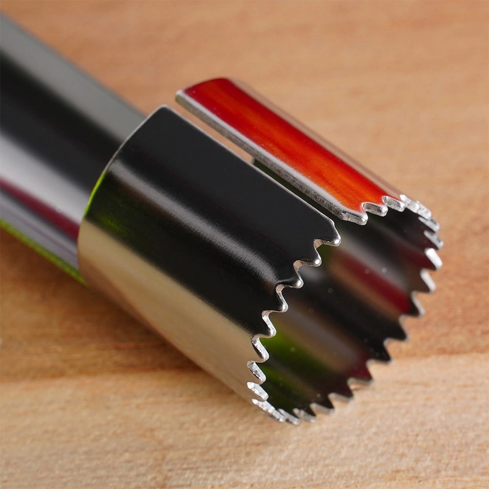 Nazobčana krona zlahka prodre skozi lupino in meso ter pusti gladko odprtino, idealno za polnjenje ali okraševanje.