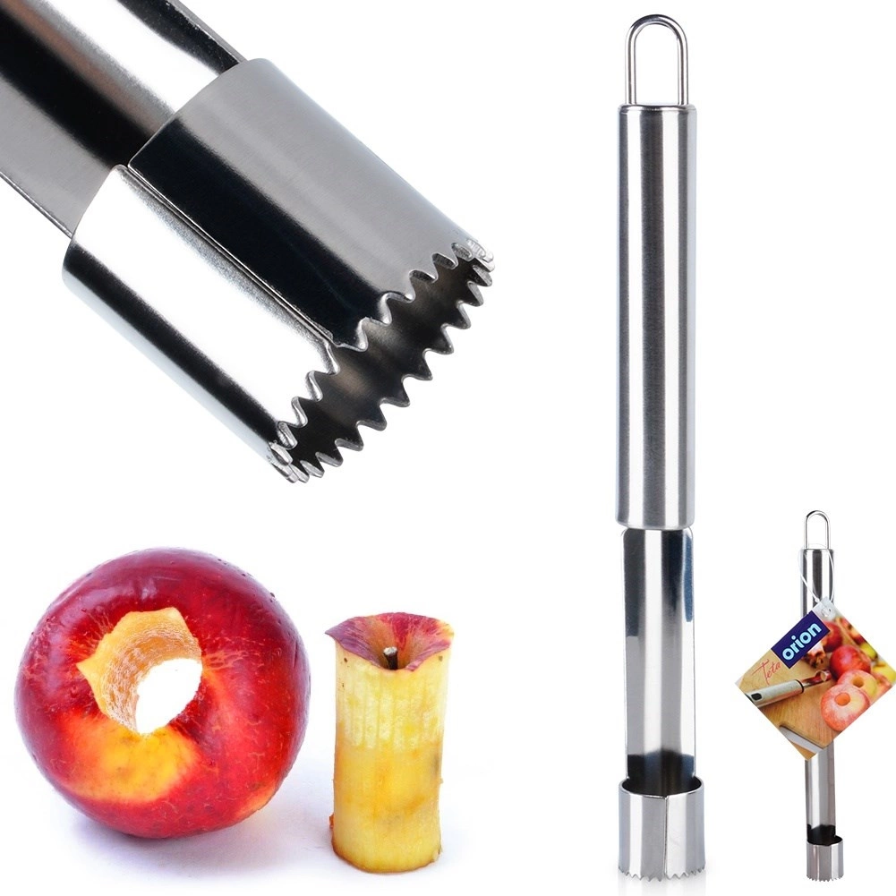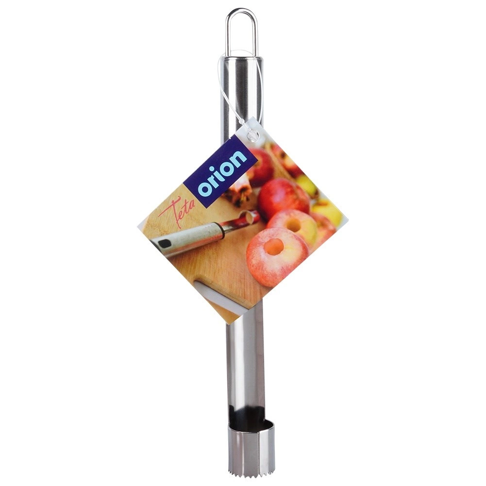 Ta nerjavni izkoševalnik je idealen pomočnik za vsakodnevna kuhinjska opravila. Z enim vstavkom in zasukom nazobčane krone hitro odstranite peščišče iz jabolk in hrušk, pripravite sadje za polnjenje ali okraševanje ter pospešite pripravo štrudlja, pit in sladic. Popolnoma kovinska konstrukcija je higienska, odporna in varna za stik z živili.